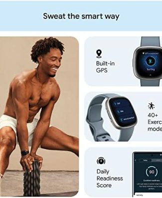• Sale! Fitbit Versa 4 Fitness Smartwatch with Daily Readiness, GPS, 24/7 Heart Rate, 40+ Exercise Modes, Sleep Tracking and more, Waterfall Blue/Platinum, One Size (S & L Bands Included)