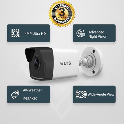 LTS CMIP8042W-28MA | 4MP Bullet Security Camera Outdoor | IP Network PoE Camera with 98ft Night Vision | IP67 Weatherproof | Smart Motion Detection for Home and Business Security